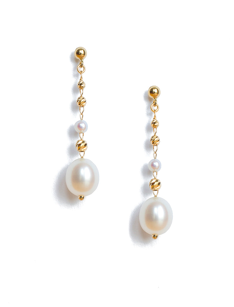 • 18K Yellow Gold, Akoya Pearl and Fresh Water Pearl Earrings